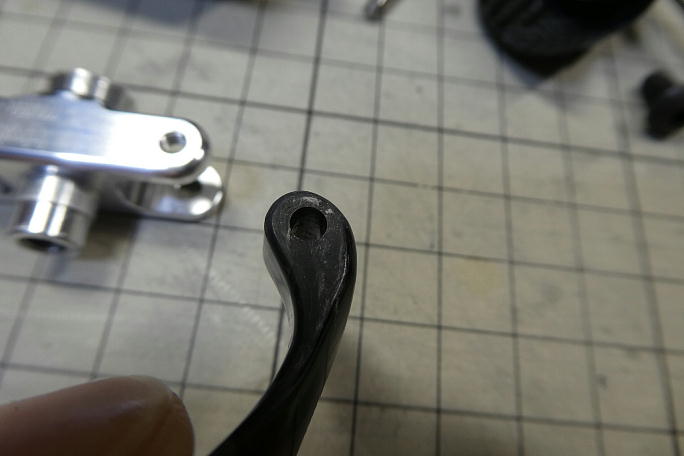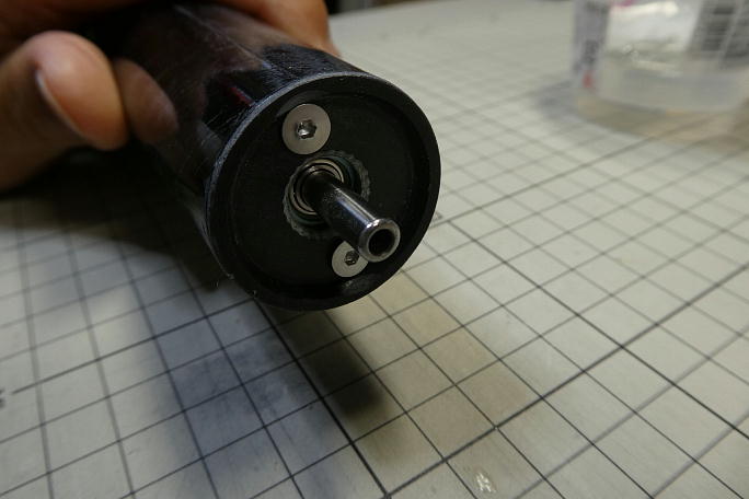 ハブとペラが当たってスムーズに動きません。 銀色に光った部分が当たっている所なので、この部分を削って調整