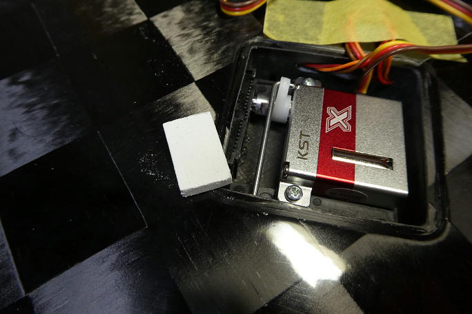 サーボベッドにのみ中粘度瞬間接着剤で接着します。 これならば、プレートを少し抉れば取り外す事ができます。