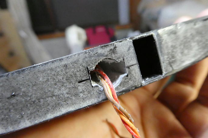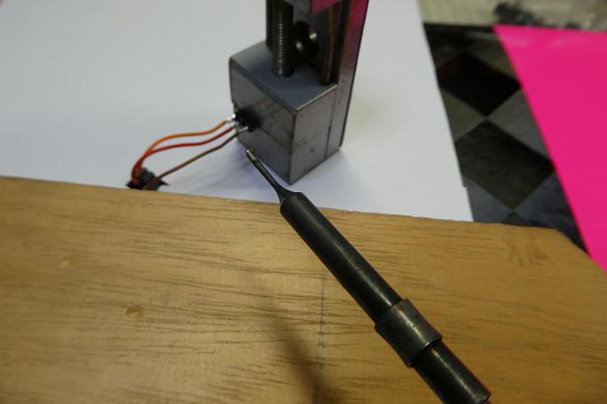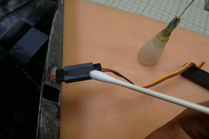 ![]() 隙間の多くあるシャーレ翼では無くコア翼なのでサーボホールのサイズが限られています。 サーボコードの余剰を格納 するスペースもないので、コードを切断してコネクタを付け直します。 ![]() 連結するハーネスのコネクタは、スペースを考えてメスコネクタを使用せず、ピンヘッダーを使用します。 ハーネスが 主翼内に予め流されているので、コネクタの取り付けは主翼上でハンダ付けをする事になります。 ハンダを落としでもすると大惨事になるので、ボール紙を敷いて養生をして、その上でハンダ付け作業を行います。 ![]() シュリンクチューブを縮めれば完了です。 |