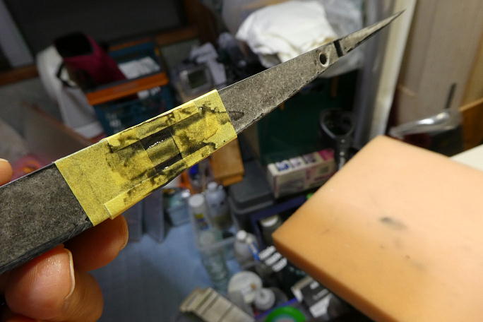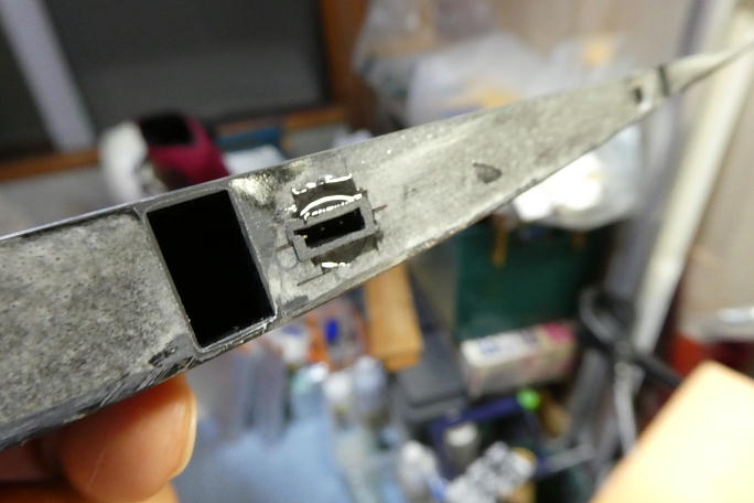![]() センター翼端面のコネクタハウジングは、キットにハウジングが付属しますが、オーナーのリクエストにより通常のオス、 メスコネクタでの接合に変更します。 ![]() コードホールのセンターをマーキングして、メスコネクタのハウジングが入る切り欠きを加工します。 ![]() 加工の終わった端面です。 ![]() 接着をするメスハウジングは表面を良くサンディングして足付けをしておきます。 ![]() ハウジング表面をプライマー代わりに硬化促進剤で拭いておきます。 硬化促進剤にはロックタイトの712を使用します。 ![]() (上が下面です。) カンザシの角度に合わせてコネクタの位置決めをして、瞬間接着剤で端面とコネクタのハウジングを接着します。 ![]() 接着剤が内部に回らないように、0.5ミリ程突き出して接着しています。 ![]() 突き出したコネクタのハウジングを端面に合わせて平らに削ります。 マスキングテープで養生をして、小さなサンディング ブロックを作製して削って行きます。 ![]() 上下に隙間が出来ているので埋める事にします。 隙間にスクラップバルサを詰めて、周囲をマスキングテープで養生 をします。 ![]() カーボンパウダー入り5分エポキシを練り込み、表面を整えます。 ![]() マスキングテープを剥がして完了です。 |