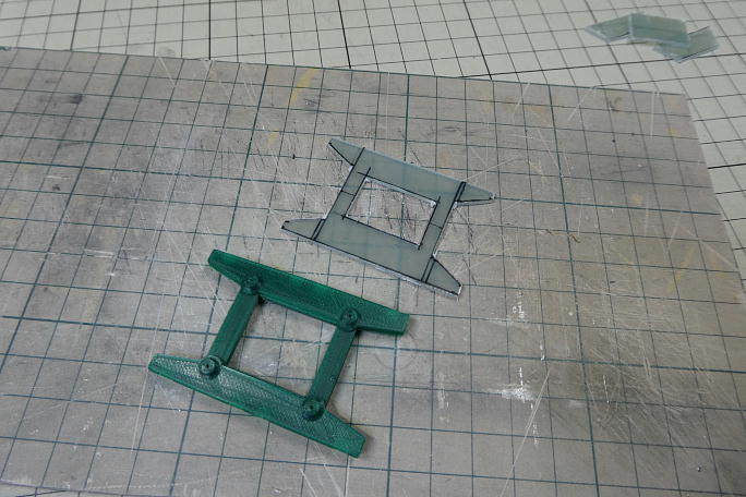 ![]() 付属の3Dプリンター製のサーボマウントが変形していて使い物になりません。 ![]() 1.5ミリのFRP板からサーボベッドを切り出す事にしました。 ![]() 切り出してから全体の形を整えて、補強用のパーツを切り出しました。 ![]() 補強パーツの接着と取り付けねじ穴を開けて完成です。 |
