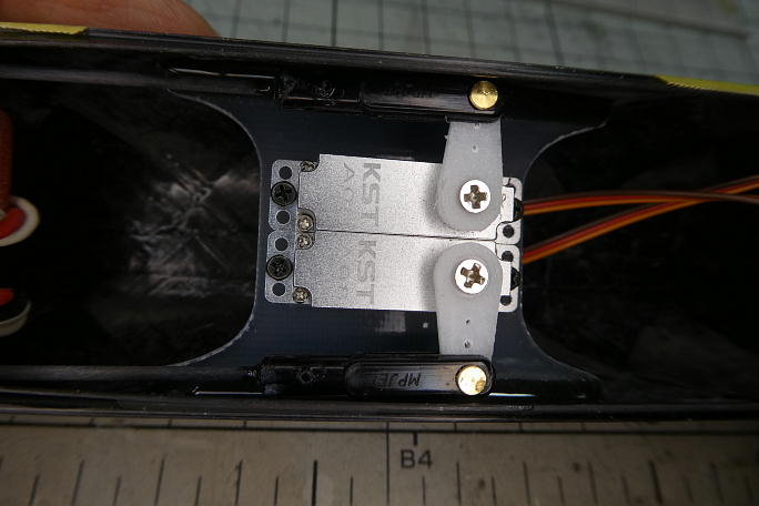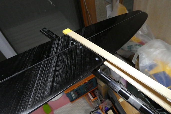 エレベーターのフルアップでホーンと胴体の切り欠きが干渉するので削って広げました。