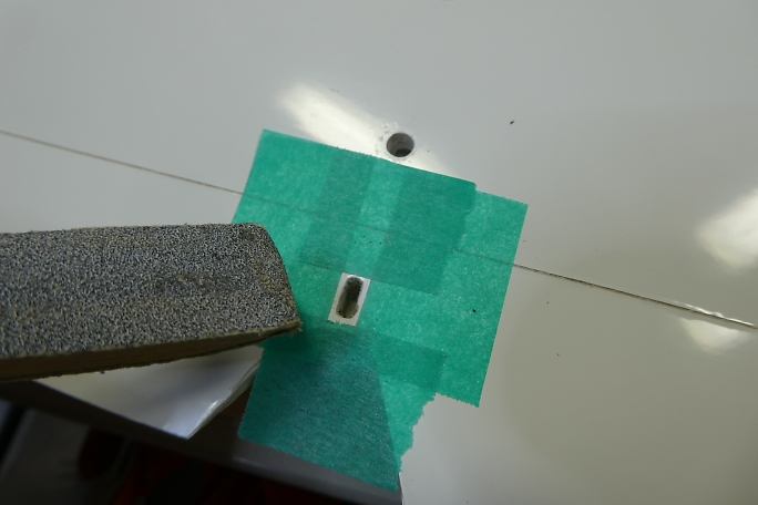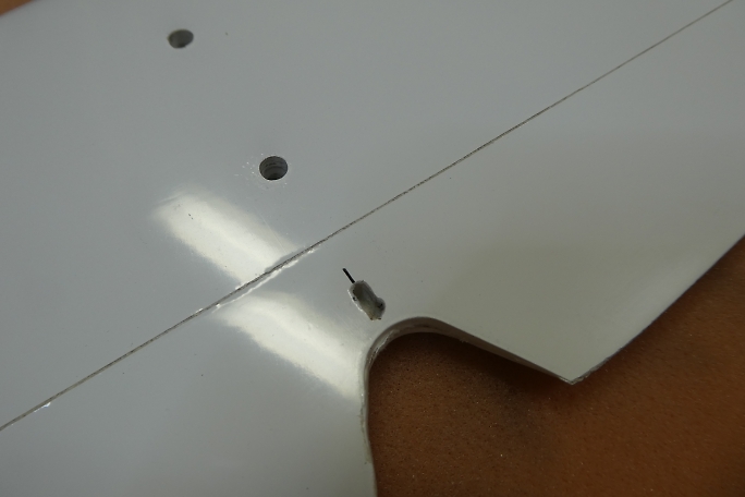 ![]() エレベーターホーンはキット付属の物を加工して使用します。 ![]() ホーンに合わせてエレベーターに取り付け穴を加工します。 ![]() ホーンの表面をサンディングして足付けをしておきます。 ![]() ホーン穴の周囲を1ミリ程残してマスキングして、サンディングしておきます。 ![]() マスキングテープの幅を狭めて、ホーン穴にカーボンパウダー入り5分エポキシを充填とます。 ![]() ホーンをゆっくり、はみ出てくるカーボンパウダー入り5分エポキシを取り除きながら沈めます。 ![]() マスキングテープは直ぐに剥がしておきます。 |