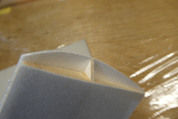 ![]() 現状、翼端部はこのようになっています。 スパーの翼端側の切り上げが見えています。 ![]() サンディングブロックで、スパーの切り上げの角度に合うように上下のプランク材を削ってフラットに仕上げます。 ![]() 翼端材を発泡用瞬間接着剤で接着します。 カットされた翼端材が同封されていたのですが、隙間に入り込んで 見つからず、修理用として同封されていたスチレンペーパーを使用しています。 ![]() はみ出た部分を整形して完了です。 |