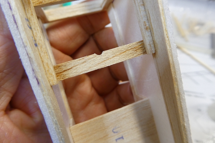 ![]() サーボベッドになる部材を実際のサーボに合わせて接着します。 ![]() サーボベッドをさーぼの幅キッチリに接着するので、サーボベッドの中央にサーボコードを逃げを加工しておきます。 ![]() 付属のジグで捻れずに製作ができます。 |