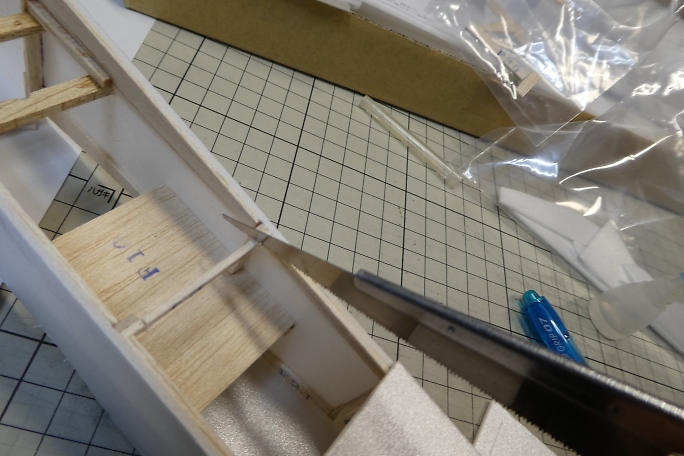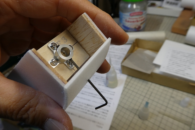![]() プランクの準備に、胴枠と側板の段差をサンディングブロックでサンディングして取っておきます。 ![]() 前部のプランク材は、筒に巻き付けて癖を付けておきます。 ![]() 下面プランクが貼り終わりました。 ![]() モーターマウントは下面のネジだけでモーターの脱着をします。 イモネジにアクセス出来るように下面プランクにレンチ の入るギリギリサイズの穴を開けておきます。 ![]() 上部のイモネジはモーターのシャフトが抜けるギリギリの締め加減で高粘度瞬間接着剤を垂らして固定しておきます。 ![]() ![]() キット指示に従って、バッテリースペースの胴枠の一部をカットしておきます。 |