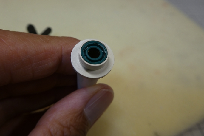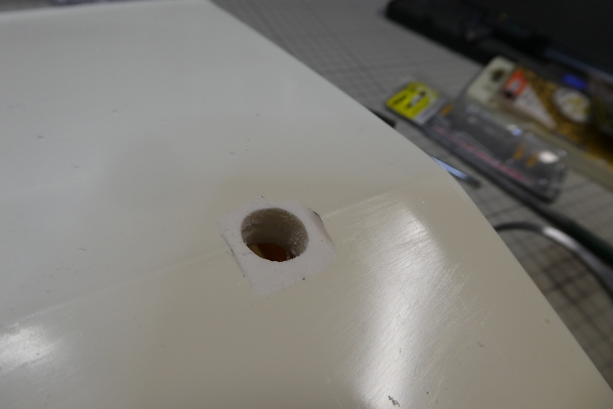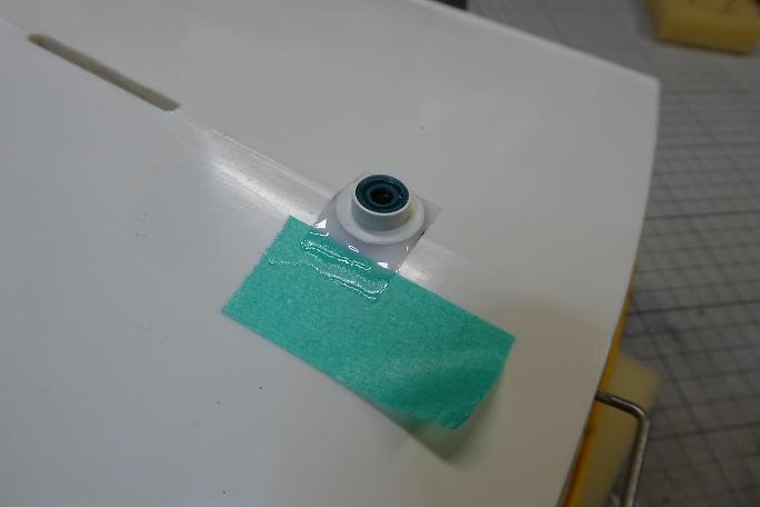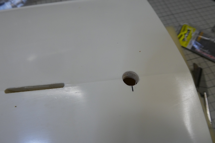曲がったラダーは直そうかと思っていましたが、似たサイズの新品が手に入りました。 ![]() こちらはシールが付いていて、防水仕様です。 ただ、舵鞘の径は元の物よりかなり太いです。 ![]() 新しい舵鞘の外径は約10ミリです。 ![]() 船体には内径4ミリの真鍮パイプが挿入されていました。 これを抜き取ってしまいます。 ![]() 4ミリドリルでもんだ所、発熱で樹脂が溶けてあっさりと抜けてしまいました。 ![]() ドリルビットで穴を広げた後、ステップドリルで10ミリに穴を広げました。 中心線をマジックで書き込んで、穴位置が ずれないようにしました。 ![]() 舵鞘のフランジ部分が浮いてしまうので、船体側を削って合わせます。 ![]() 舵鞘を瞬間接着剤で接着しました。 ![]() 段差部分はマスキングテープで養生をして、マイクロバルーン入り5分エポキシを盛って埋めました。 |