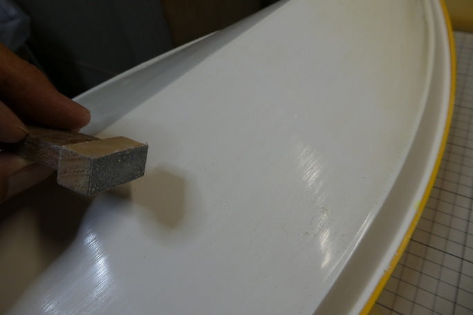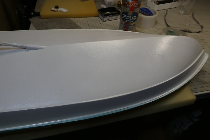 ![]() 塗り直しをするので、ステッカー類は全て外しました。 ドライヤーで温めて剥がすと糊残りも少ないようです。 ![]() 全体をサンディングして、劣化した部分を削り落とします。 ![]() 船底は成形時の歪みがあったので、削れるだけ削って修正を試みました。 ![]() 全体をサンディングし終わったら、シリコンオフでデッキ、船底共に良く脱脂しておきます。 削りカスが静電気で貼り付いて いるので、良く除去しておきます。 ![]() 船体がABS樹脂らしいので、アクリル系の塗料で割れが出る可能性を見て、全体をミッチャクロンでコートしておきます。 |