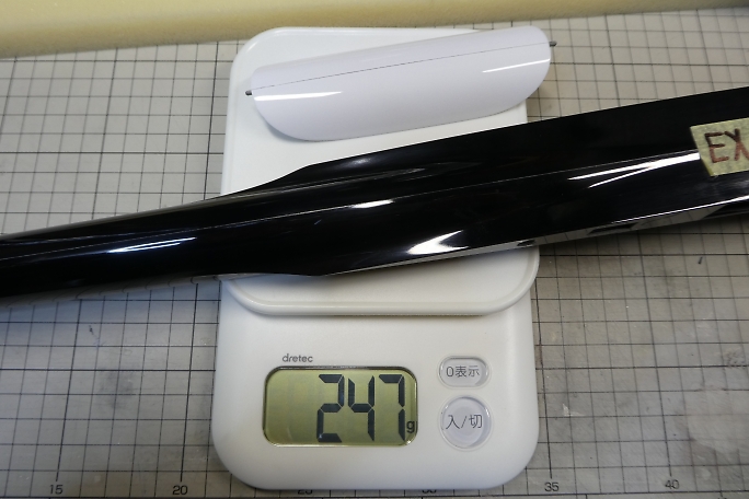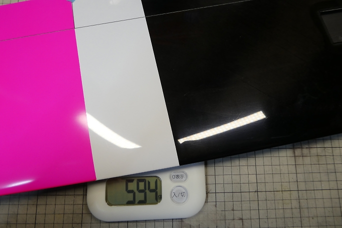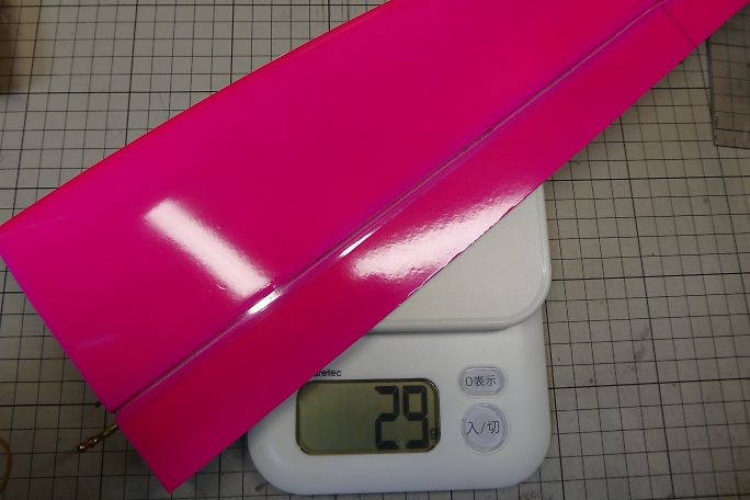![]() 左Vテールは29グラム。 写真は裏面になります。 Vテールホーンは取り付け済みになっていますが、ボールはハンダ 付けでは無く接着剤での取り付けです。 ![]() 右Vテールは31グラム。 舵面はギガフラップでヒンジは上面です。 ![]() 左主翼は596グラム。 写真は上面です。 ![]() 右主翼は594グラムです。 写真は下面です。 ![]() 胴体は275グラム。 曳航フックとリンケージロッドを含みます。 |