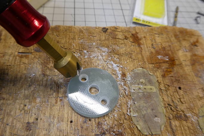 ![]() リュータースタンドを使って、19ミリピッチで3ミリの穴を開けます。 いきなり3ミリのビットを使わず、1ミリから順次 ビットを太くしていきます。 ![]() ステップドリルを使用して、センターのシャフト穴を6ミリに広げます。 ![]() ![]() モーター取り付け穴を皿穴加工してモーターマウントの完成です。 |