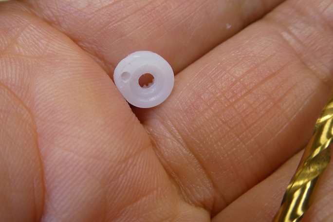![]() エルロンサーボのサーボホーンは普通のサーボホーンでは確実にサーボホールよりはみ出します。 出来ればフラットな 主翼下面にしたいのでサーボホーンは加工した物を使用する事にします。 一番スペースのありそうなサーボホーンの余白に穴を開ける事にします。 中心より3ミリの位置としました。 ![]() 1ミリのドリルから広げて、リンケージロッドの太さの1.2ミリで仕上げます。 何個か失敗して二個揃えました。 サーボ底面からサーボホーントップまでで7.4ミリとなり、サーボホールの深さに収まります。 ![]() ネジを締めてロッドを仮入れしたところ、サーボホーン取り付けねじとロッドが干渉してしまいました。 ![]() サーボホーンの取り付けねじ穴を皿穴加工することでネジが深く締められるようになり、干渉を回避することができました。 |