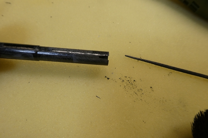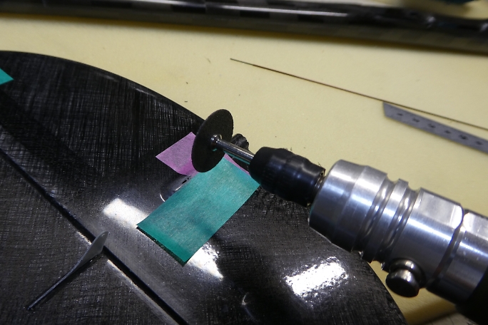 ![]() ![]() 胴体側のラダーリンケージの取り出し口を加工します。 肉厚を使ってスロープを作る感じで削っていきます。 ![]() 垂直尾翼にラダーリンケージの取り出し口を加工します。 ラダーホーンから1ミリオフセットします。 ![]() 加工が完了したリンケージ取り出し口です。 |