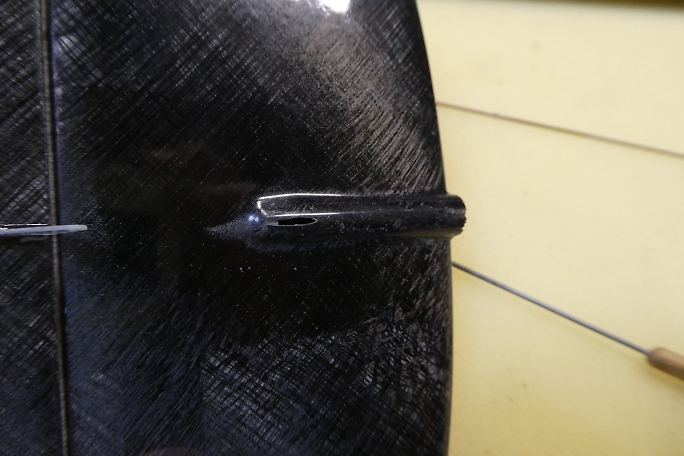 ![]() 垂直尾翼底部にスキッドを取り付けます。 これは別に無くてもかまわないのですが、きむらクラフト機には全て付けて いますし、おかげでこの部分が削れたりボロボロになる事はありません。 超音波カッターで底部に切れ込みを入れます。 最近の機体は物部分にロービングなどの補強を入れて来ている機体 が増えていて、切れ込みを入れるのが大変です。 ![]() スキッドはドライカーボンシートから切り出します。 表面は良くサンディングしておきます。 ![]() カーボンパウダー入り5分エポキシを充填してスキッドを差し込みます。 はみ出たカーボンパウダー入り5分エポキシ を使ってフィレット状にして補強とします。 |