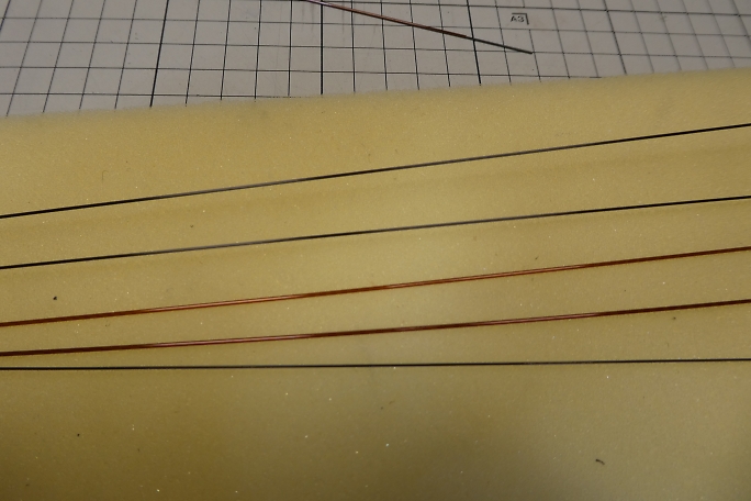 ![]() エレベーター、ラダーリンケージに使用するカーボンロッドとポリイミドチューブです。 カーボンロッドは0.7ミリ、 ポリイミドチューブは内径0.8ミリの物です。 一番下は0.6ミリ綱線です。 ![]() ポリイミドチューブの表面を硬化促進剤で拭いておきます。 静電気でホコリを呼んでいるようです。 ![]() ポリイミドチューブに綱線を通し、ラインをネオジウム磁石を50ミリ間隔程度に置いて決めます。 テール部から低粘度瞬間接着剤をポリイミドチューブに目掛けて4〜5滴、滴下して、直ぐにエアダスターで一吹き して瞬間接着剤を流します。 こちらはラダーリンケージです。 ![]() こちらはエレベーターリンケージ。 ほぼ180度回転します。 極力直線的なラインを心がけます。 |