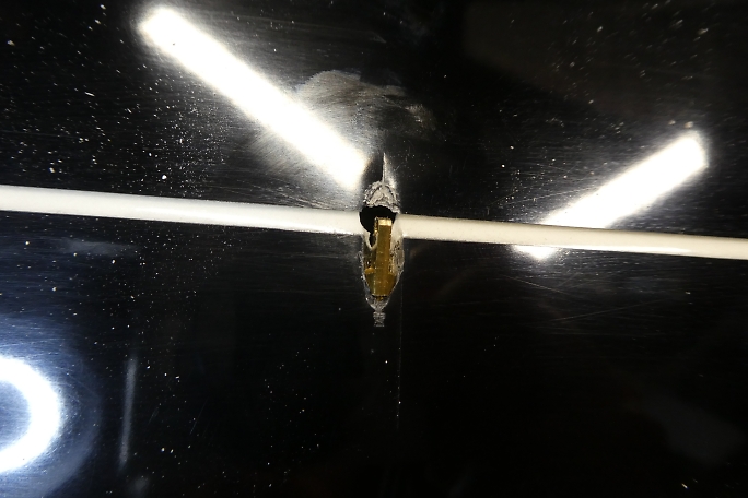 ![]() NAN Modelsの機体製作でのお約束、ブラスホーンの受け、インサートナットの内部には樹脂だったり離型剤だった りが入り込んでいるので、M3のタップでさらって、内部のお掃除をしてあげます。 ![]() ホール部分は本来ブラスホーンの首サイズに合っているはずですが、高確率で入らないので、ブラスホーンの首部分と 同じサイズの4ミリドリルで広げておきます。 ![]() ブラスホーンを仮入れしてみます。 ブラスホーンはここまで入れます。 ![]() ギャップシールを使用する樹脂クレビスの幅+アルファの6ミリ幅に広げます。 ![]() ブラスホーンを奥まで押し込む代償として、樹脂クレビスのピンが入れづらくなります。 ギャップシールにピンの傘部分 の逃げを加工します。 |