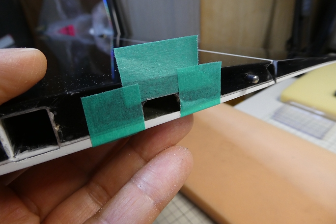 ![]() 接着するコネクタのハウジングは表面の接着面をサンディングして足付けをておきます。 ![]() 主翼内を糸ハンダを使用してコネクタを翼端に引き出します。 糸ハンダは自重があるので、上手いことコードを導いて くれます。 ![]() メスコネクタを挿入して持ち手して作業性を向上させます。 コネクタのハウジングの接着面を硬化促進剤で拭いて おきます。 ロックタイトの712を使用します。 ![]() 2ミリ突き出して、カンザシの角度に合わせてコネクタを中粘度瞬間接着剤で接着します。 ![]() 下面の隙間もスクラップバルサで埋めておきました。 ![]() バルサが剥き出しで色味が悪いので、プラモデル用のフラットブラックで塗装しておきます。 ![]() 塗装が終わりました。 |