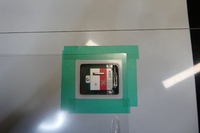 サーボカバー用のくぼみの周囲にマスキングテープを貼ってサーボカバーのサイズを表示出来るようにして、サーボ