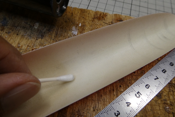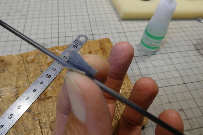 ![]() キャノピーラッチは2ミリカーボンロッドです。 中央部のみを接着するので、接着部をサンディングして足付けをしておきます。 ![]() キャノピー裏面の接着部もサンディングしておきます。 ![]() キャノピーとキャノピーラッチは硬化促進剤で拭いておきます、 ![]() 位置決めをしたら、中粘度瞬間接着剤でキャノピーとキャノピーラッチを接着します。 ![]() ![]() マスキングテープで養生をして、マイクロバルーン入り5分エポキシを盛って補強とします。 マイクロバルーン入り5分エポキシ が盛り終わったら、マスキングテープは直ぐに剥がしておきます。 |