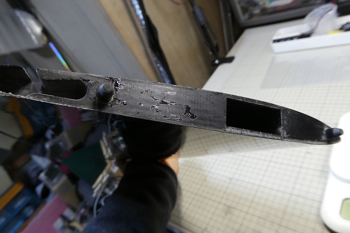![]() 右中央翼は169グラム。 4分割のロハセルコアの直貼り翼としては妥当な数字です。 この辺りの数グラムはロゴやデザイン の塗装で大きく変わる物です。 左中央翼は174グラムです。 ![]() 写真は左が後縁側になります。 フラップサーボのサーボホールは加工済みですが、サーボコードの穴は開いていません。 かろうじて、1×5ミリの横長のリード穴が開いています。 30AWG以上サイズのフラットケーブルならそのまま入るでしょうけれど、通常細めの26AWGのコードでも入らないサイズです。 また、リード穴が後縁よりなので、コードはサーボを跨ぐか迂回させる必要があります。 ![]() 胴体側の端面です。 太いカンザシの穴は開いていますが、例によってコード、コネクタの穴は開いていません。 ユーザー にて加工をする必要があります。 ![]() 外翼側の端面です。 こちら側にのみ、デュアルフラップの動作機構が組み込まれています。 エルロンサーボ用の穴はユーザーにて加工する必要があります。 |
