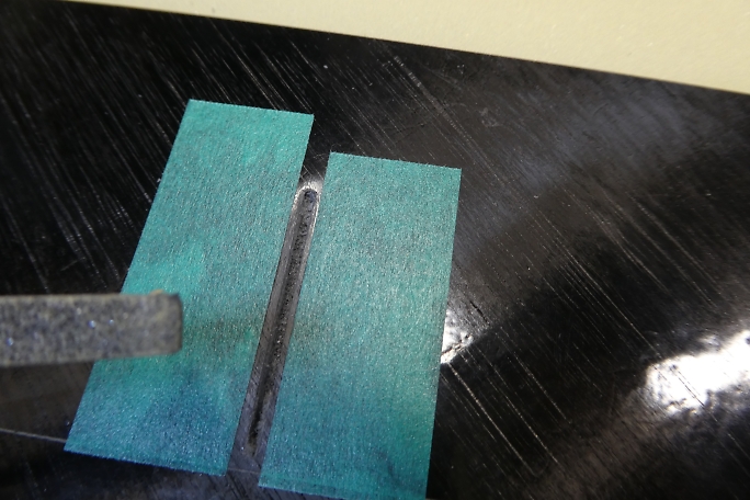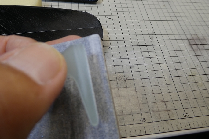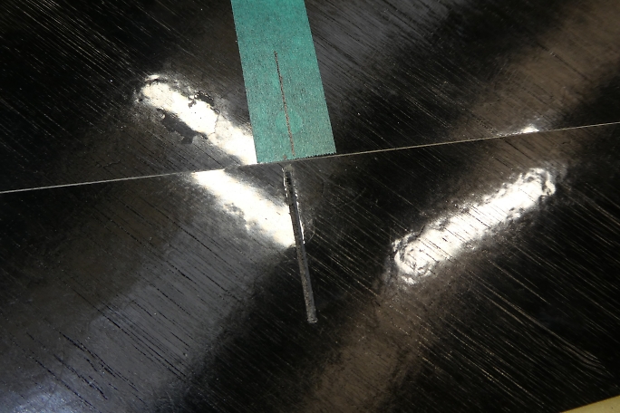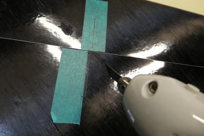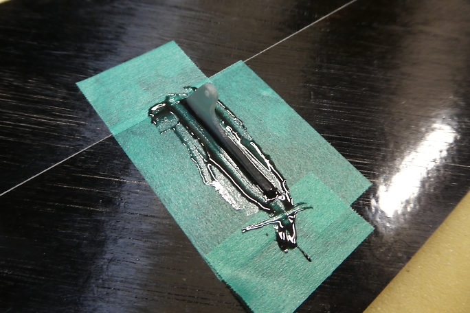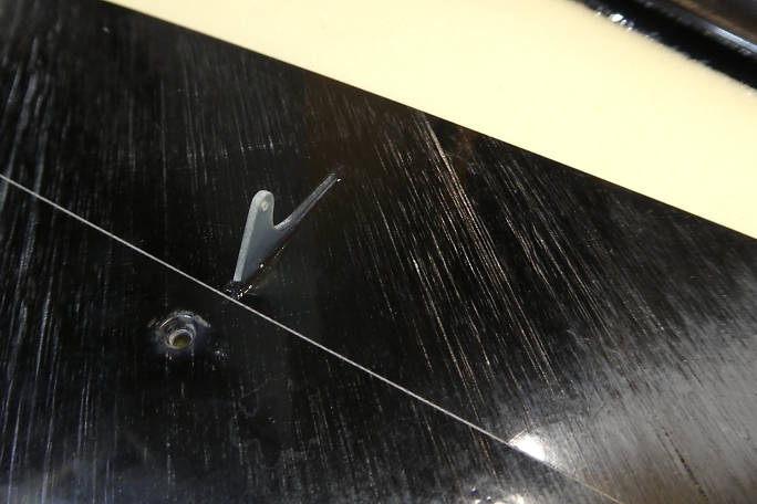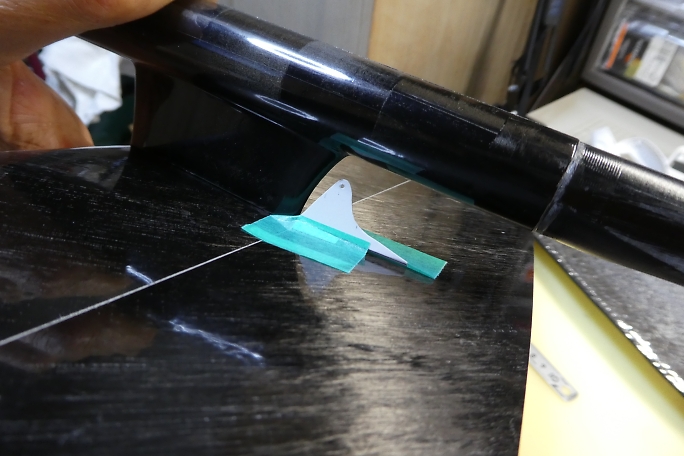 ![]() 中心から1.5ミリオフセットした位置にエレベーターホーンのスロットを加工します。 超音波カッターで表皮を切り取ります。 ![]() 中のコアを掻き出しておきます。 この当たりにホーン用の補強は一切無いので、穴を開けてしまったり変形させてしまう 事に注意が必要です。 ![]() エレベーターホーンのスロットから1ミリ開けてマスキングテープで養生をして、周囲をサンディングしておきます。 ![]() エレベーターホーンの接着部もサンディングして足付けをしておきます。 ![]() マスキングテープの幅を狭めて、カーボンパウダー入り5分エポキシを充填します。 ![]() はみ出てくるカーボンパウダー入り5分エポキシを取り除きながら、エレベーターホーンをスロットに沈めます。 強く押し付けると、反対側のスキンが変形してしまうので力加減に注意が必要です。 ![]() マスキングテープは直ぐに剥がしておきます。 |