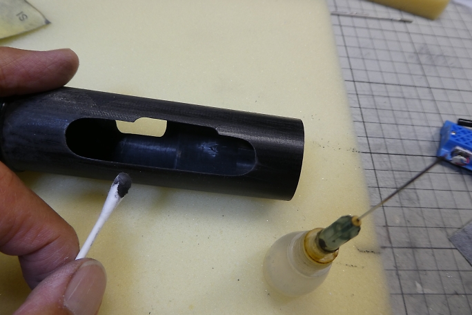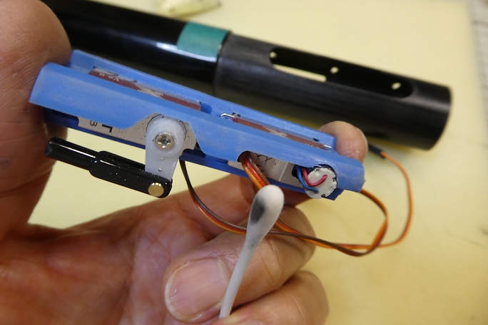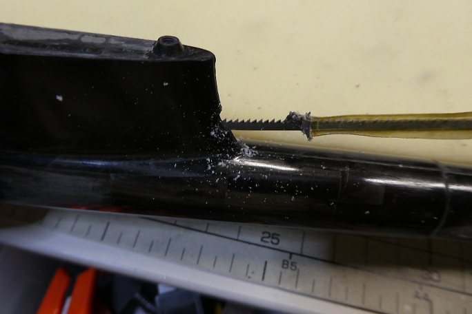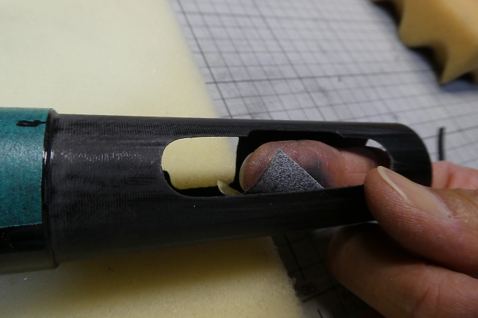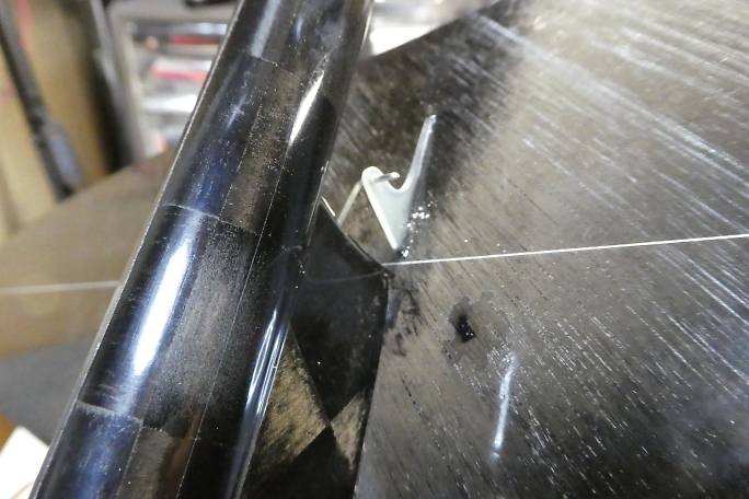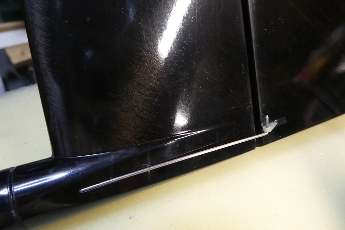 ![]() 穴を開けただけだったエレベーターリンケージ用の取り出し穴ですが、リンケージを通そうとした所、中にびっちりと ロハセルのコアが詰まっていました。 糸鋸の刃を加工した物でコアを掻き出して通路を確保しておきます。 ![]() ラダーリンケージの時と同様にエレベーターリンケージパイプを胴体内に接着しました。 エレベーターリンケージはサーボ ベッドとの兼ね合いで、一度下に着いてから再度上に持ち上がるようなルートを通るはめになっています。 これがカーボンロッドなら渋くなって使い物にならない所ですが、SUSピアノ線だったのが救いです。 SUSピアノ線は 比較的柔らかいので柔軟に対応してくれます。 ![]() 胴体内のサーボベッド接着面をサンディングしておきます。 ![]() サーボベッドの接着面もサンディングして足付けをしておきます。 ![]() ![]() 胴体内とサーボベッドの接着面を硬化促進剤で拭いておきます。 ロックタイトの712を使用します。 ![]() 中粘度瞬間接着剤で接着しました。 |
