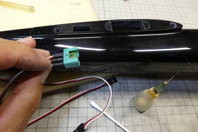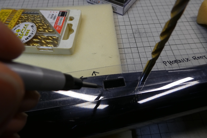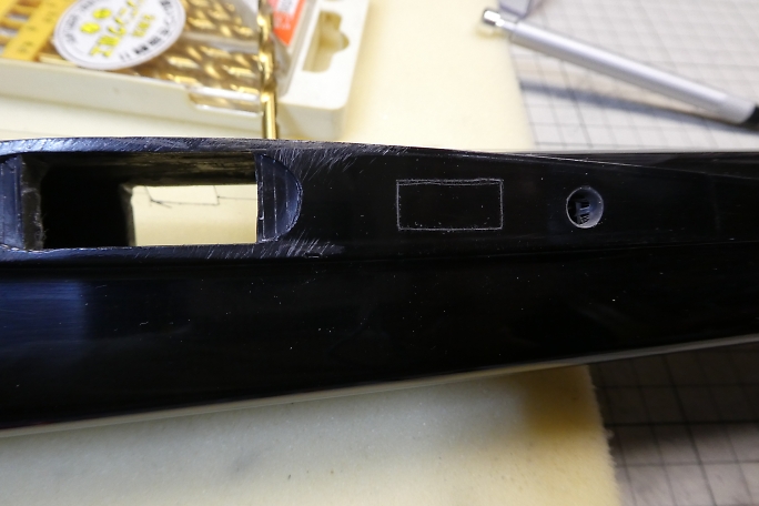 ![]() 主翼のコネクターホールを開けた時に作製したテンプレートを使用して、胴体にコネクタホールを開ける位置決めを します。 けがき針でコネクタホールをケガいておきます。 ![]() この位置がコネクタの取り付け位置になります。 ![]() マスキングテープで位置決め兼養生して穴開けを行います。 この付近はかなり肉厚になっているので、穴を開けるのは 大変です。 ![]() MPXコネクタのオスコネクタのピッタリサイズになるようにヤスリで整形、仕上げます。 ![]() コネクタの接着部をサンディングして、胴体と共に硬化促進剤で拭いておきます。 ![]() 低粘度瞬間接着剤で接着します。 |