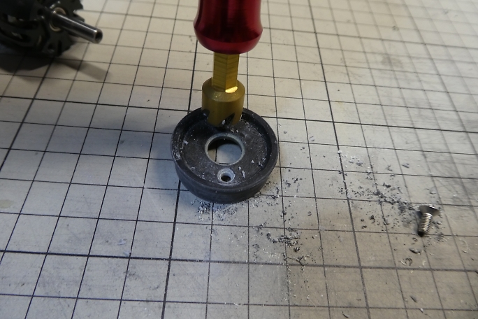 ![]() ![]() PCで製作したモーターマウントのテンプレートをスプレー糊でモーターマウントに貼り、モーター取り付け穴にポンチを 打ちます。 ![]() リュータースタンドを使用して、1ミリから順次穴を拡大、最終的に3ミリの穴に仕上げます。 ![]() 皿ネジを使用するので、フリードリルを電ドラボールにセットして皿穴加工を施します。 ![]() ![]() 完成したモーターマウントです。 |