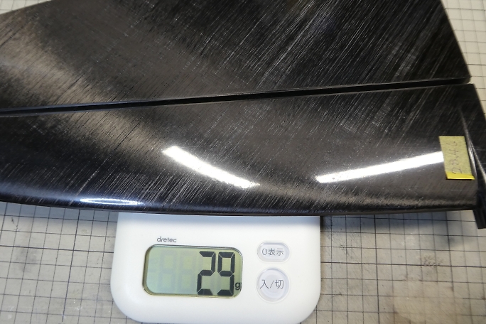 胴体の重さは一機目より8グラム軽くなっていますが、個体差程度の差です。 形も作りも同じ物でした。 ![]() ![]() 水平尾翼、垂直尾翼共に一機目とほぼ同じ重さです。 作りも胴体同様同じです。 |