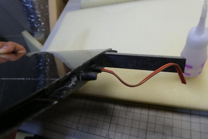 ![]() シャーレ翼ち違って、サーボーホールのサイズが限られているので、長すぎるコードを収納仕切れません。 それ以外に、コードホールの位置がフラップ寄りなので、サーボを迂回するように取り回さなければいけないために コード類は出来るだけ整理する必要があります。 サーボコードを100ミリカットして、新しいコネクタを取り付けます。 ![]() 受け側はピンヘッダーを使用するので、主翼上でハンダ付けをする必要があります。 ハンダを落としでもすると 大惨事になるので、ボール紙で養生をして、その上でハンダ付けの作業を行います。 ![]() サーボコネクタとピンヘッダーを接続、エルロンサーボ用延長コードと共にサーボホールに納めます。 |