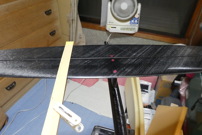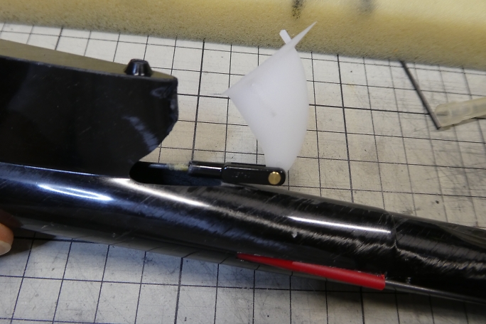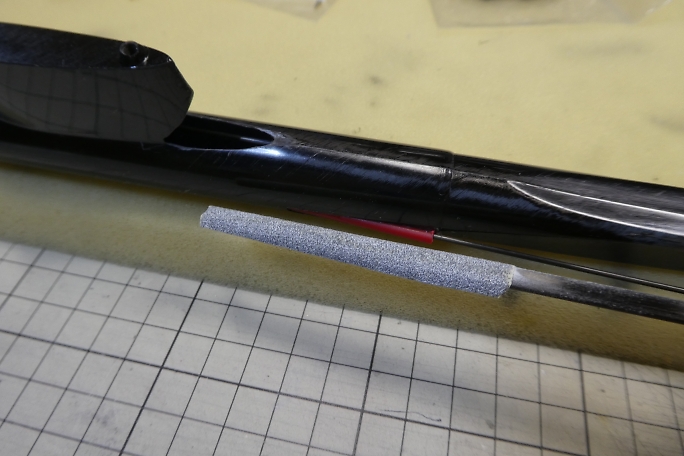 ![]() 今回、アウターパイプの取り付けがメーカーにて施工済みになりましたが、エレベーターリンケージのアウターパイプ は胴体内部の上面に一直線に取り付けられていて、パイプの後端はパイロンの中程まで来ています。 エレベーターホーンのサイズから、少しリンケージロッドを持ち上げる感じに取り回されますが、リンケージロッドに 少し角度が付くだけで凄い抵抗になってしまいます。 ![]() パイロンの内壁を削って、曲がりのアールを出来るだけ大きくしてあげる必要がありました。 ![]() 素材の関係か、棒ヤスリよりサンドペーパーの方が良く削れたので、棒ヤスリにサンドペーパーを巻き付けて使用 しました。 ロッドの抵抗が及第点になるまで、かなりの量を削りました。 |