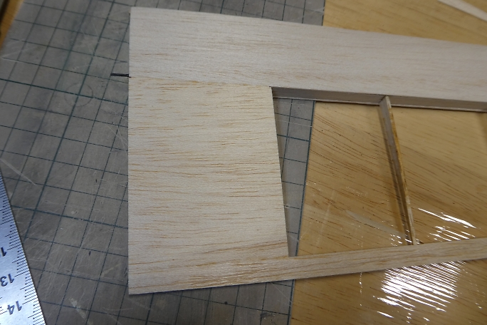 ![]() 2枚構成の中央プランク材を繋ぎ合わせて、現物合わせでマーキング、カットします。 ![]() 中央プランク材は内側から接着剤を流して接着します。 ![]() この段階で補強の三角材を接着します。 ![]() 上面の中央プランク材を現物合わせで用意します。 少し大きめにカットしたら、少しずつ削って合わせます。 ![]() 上面の中央プランク材を接着します。 低粘度瞬間接着剤で接着していますが、上面のプランク材との境目の接着剤 は最低限の量で、はみ出した場合は直ぐにウエス等で拭き取っておきます。 後にサンディングをする時に、硬化した 瞬間接着剤の所が削れずに残ってしまうのを防ぐ為です。 |