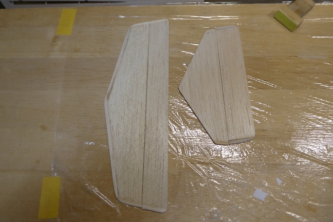 ![]() 少し水平尾翼面積が大きい方が良いと言う情報を元に、外周を1.5ミリ×4ミリバルサを接着します。 尾翼の補強 にもなる工法です。 製品版では最初からこのサイズかもしれません。 ![]() 一周貼り終わりました。 ![]() 全体をサンディングして角を落とし丸め加工をします。 動翼は後縁を1ミリ程度にサンディングして仕上げます。 ![]() サンディングが終わった尾翼です。 |