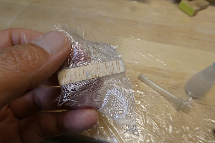 ![]() キット付属の水平尾翼パイロンです。 ![]() フリーハンドで涙滴型に整形しました。 ![]() 補強の為にマイクログラスを巻いて、低粘度瞬間接着剤を染みこませます。 ![]() 接着剤が硬化後、サンディングして不要部分を削り落とします。 |
