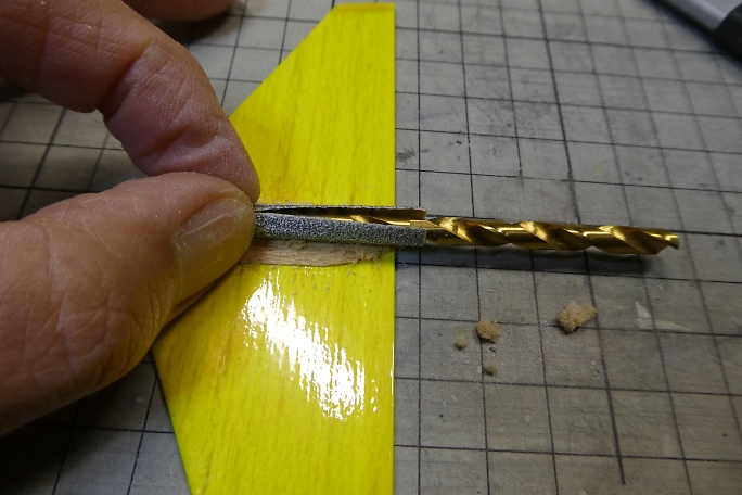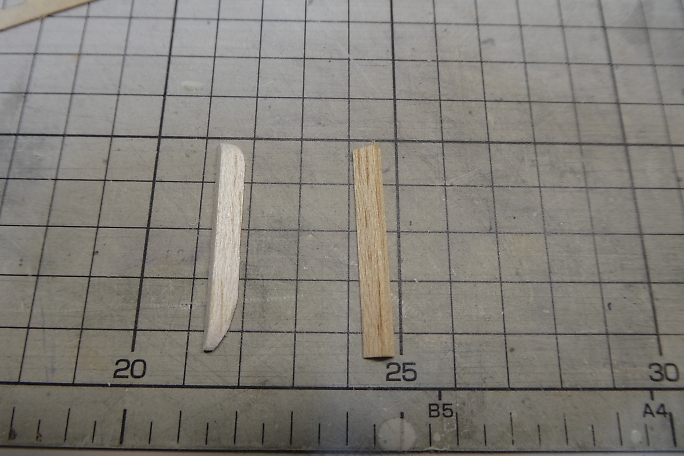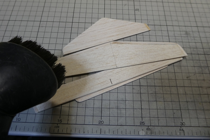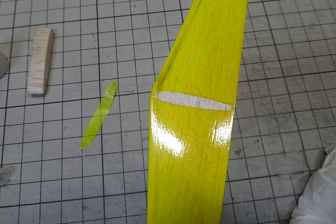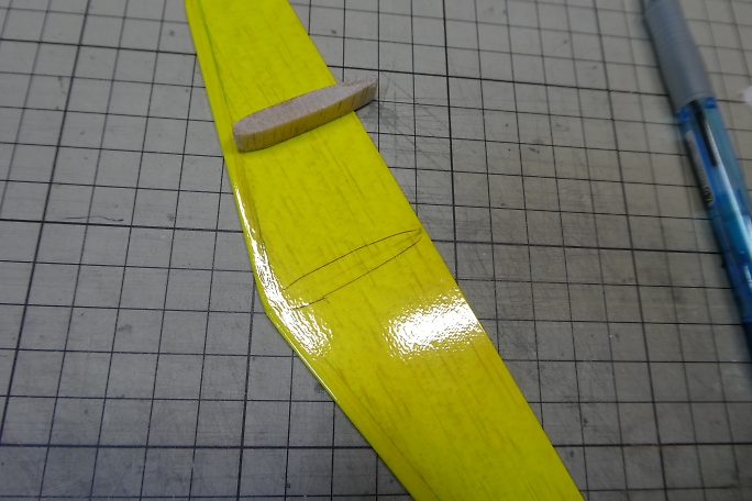 ![]() 垂直尾翼の補強材を加工します。 右が加工前、左が加工後です。 ![]() 補強材の外観をマーキングして、フイルムを切り取ります。 切り取ったら周囲はアイロンを当てて密着を強化して おきます。 ![]() 低粘度瞬間接着剤で接着します。 ![]() 垂直尾翼のテールパイプ取り付け部を半円形に整形します。 4.8ミリドリルにサンドペーパーを巻いたら仕上がり の径が丁度良いサイズでした。 ![]() 整形が終わった補強材です。 ![]() カーボンパイプを乗せてみました。 |