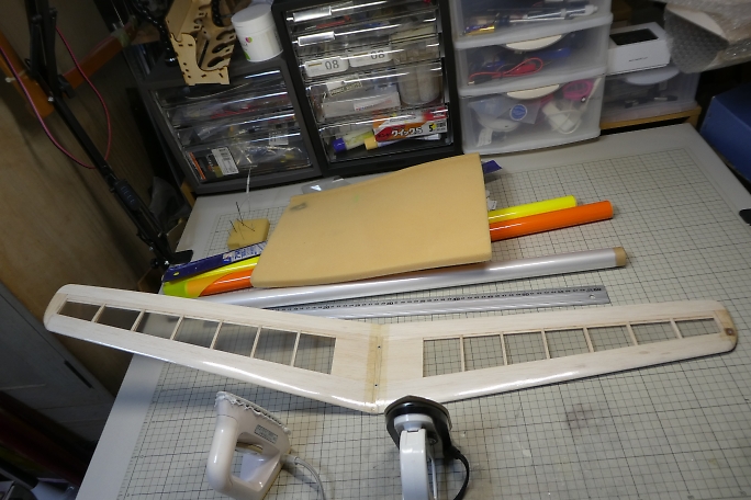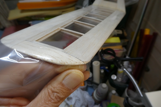 ![]() 主翼は下面から貼っていきます。 固定フラップ部分を先に密着させるとつなぎめが浮いてきません。 下面を貼った段階ではリブの部分の収縮はさせません。 上面を貼り終えてから上下均等に収縮させます。 ![]() 翼端部分は高温のアイロンでしっかり加熱してから思いっきり引っ張って馴染ませます。 上下面を均等にシュリンクさせたら数日放置して、浮きや弛みが出たら修正しておきます。 |