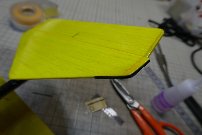 ![]() 垂直尾翼底部はヒノキ材が接着してあり、垂直尾翼の保護になっていますが、フイルムの保護が出来ません。 今までは垂直尾翼の底部に切り込みを入れて、カーボンシートでスキッドを作って装着していたのですが、すっかり 忘れていました。 手元のカーボンシートを1.5みり幅に切り出し、スキッドにします。 ![]() 接着面をサンディングしておきます。 ![]() 垂直尾翼の底部に瞬間接着剤で接着しました。 |
