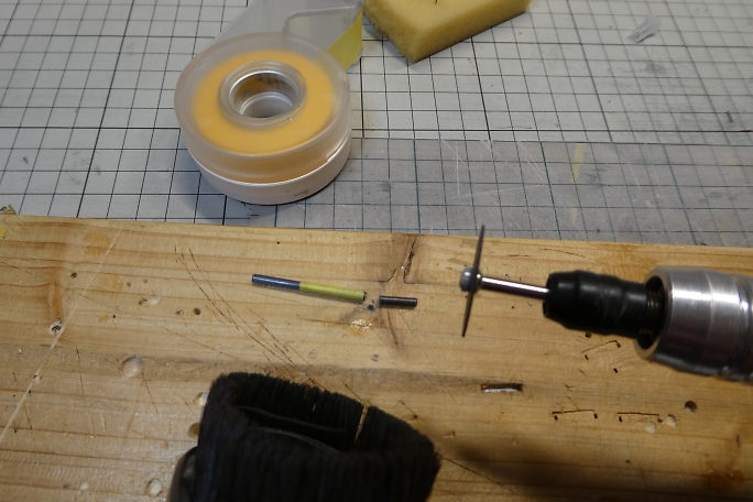 ![]() ペグは指の長さに合わせてカットします。 長すぎると邪魔ですが、短いのも指に食い込んで痛いので、翼端を指で挟んで 上下に少しはみ出程度が良いでしょう。 ![]() 接着部はサンディングして足付けをします。 低粘度瞬間接着剤で接着しました。 |