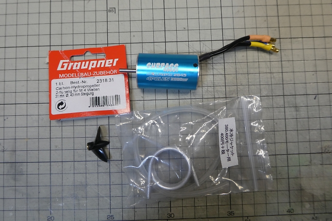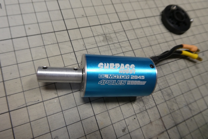 船外モーターにはモーターやスクリューは付属せず、自分で調達する必要があります。 ただ、モーターマウントのアダプターが付属していて、540モーターの25ミリピッチと400モーターの19ミリピッチの 両方が使えます。 付属のジョイントは両端3.2ミリ穴なので、2.3ミリの400クラスモーターを使用する場合は2.3ミリ〜3.2ミリの変換 アダプターが必要になります。 きむらクラフトとしてはミニマムを好みますので、400タイプのモーターをチョイスしました。 デューンバギーに使おうかと 手持ちしていた密閉型のブラシレスモーターを使用します。 2845、直径28ミリ、全長45ミリ、Kv値は2800です。 スクリューと400モーター用のウォータージャケットは別途購入 しました。 |