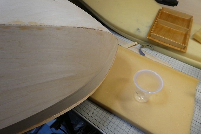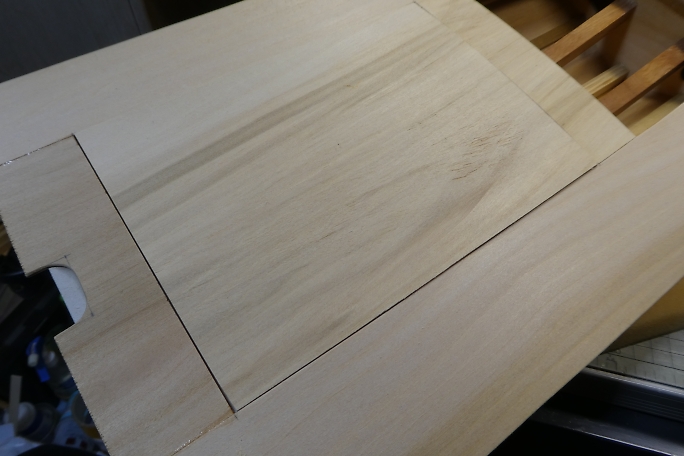 ![]() 切り出したハッチ用の部材に甲板のアールを癖付けします。 部材をしっかりと水で濡らして、丁度サイズが良かった ゴミパコに養生テープで巻き付けて一晩放置します。 この状態で乾燥すれば、少しではありますが、曲がり癖が付いています。 ![]() 手持ちの1.5ミリベニヤからウォーターストリップになる部材を切り出します。 ![]() 内側からウォーターストリップを接着、この縁にハッチを乗せる形になります。 図面には全くこの項目に関しての指示 が無いので、オリジナルがどのようにハッチを保持するのかは不明です。 ![]() ハッチのフレームは、オリジナルではハッチの幅一杯のサイズがありますが、ウォーターストリップを取り付けた為に、 その分を切り取ります。 ![]() 癖付けをしたハッチ部材にフレームを接着してハッチの完成です。 |
