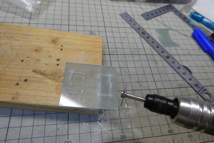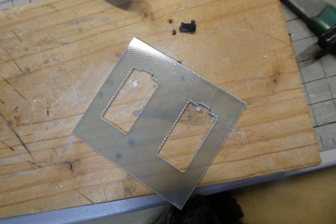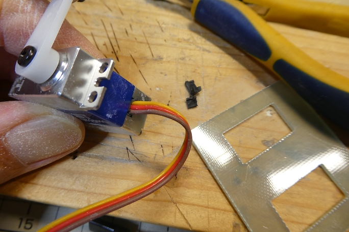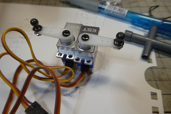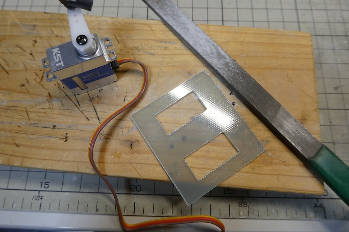 ![]() サーボホーンにボールリンクをネジ止めするために、ホーンの穴を2.5ミリドリルで広げて、M3のタップでネジを切ります。 ![]() ラダーのコントロールにサーボを2個使用します。 2個のサーボをVテールミキシングで動かし、チルトコントロールを 可能にします。 ![]() サーボベッドは1.5ミリFRP板から切り出します。 切り出しにはリューターの切削砥石を使用しています。 ![]() 開けた穴を、サーボのサイズピッタリに成型します。 サーボの位置決めを取り付けねじに頼らない仕様です。 ![]() サーボコードの取り回しに邪魔になるので、グロメットは取り除いてしまいます。 ニッパーで一カ所切れ込みを入れて、 ラジオペンチで引っ張って取り除きます。 ![]() サーボコードの逃げを加工します。 これが無いと、サーボケースのギリギリサイズに仕上げているので、サーボが 入りません。 ![]() 4ミリベニヤで周りを囲います。 下のベースは仮止めです。 ![]() ホーンのアジャスター間を65ミリ、ベースの底面からアジャスターまでを45ミリとしています。 船外機のホーン位置に 合わせてあります。 ![]() ベースの取り付けねじ穴を長穴に加工します。 サーボベースの位置決めに自由度を持たせる為です。 ![]() ![]() ベースとサーボベッドを接着しました。 |