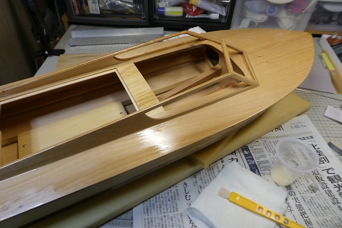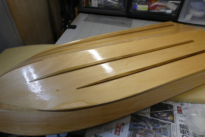 ![]() サンディングシーラーを塗る準備として、事前に塗っておいたクリアラッカーをサンディングして粗方削り落としておきます。 ![]() サンディングシーラーを刷毛塗りします。 船底を塗って乾かし、デッキを塗りますが、一日で片方しか塗れないので とても効率が悪いです。 ![]() 乾燥後、スポンジヤスリで粉が出なくなるまでサンディングします。 ![]() ![]() 再度サンディングシーラーを塗ります。 節などのピンホール部分には少し厚めに塗ってみました。 |