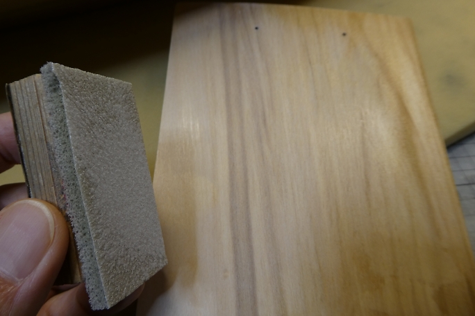 ![]() ![]() 更にサンディングシーラーを塗って研ぎ出します。 指がつりそうになったので、スポンジヤスリを板に貼ってみました。 とても具合が良かったです。 ![]() 最後にスポンジヤスリのマイクロファインで仕上げサンディングを行います。 |