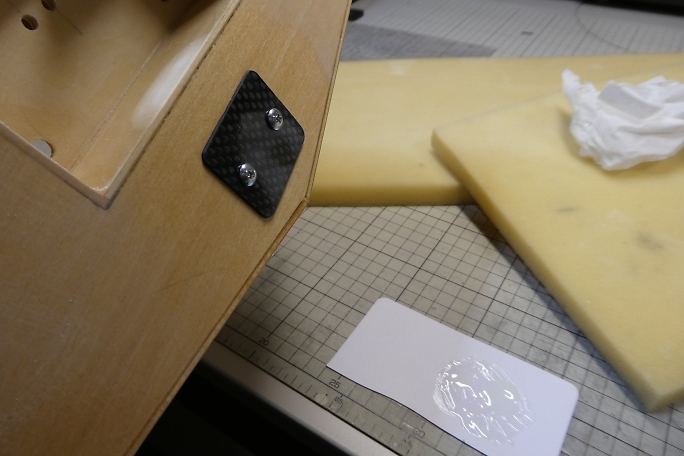 モーターマウントを5分エポキシで接着します。 取り付けねじで締め付けて密着させます。 |
