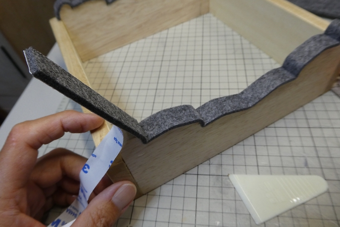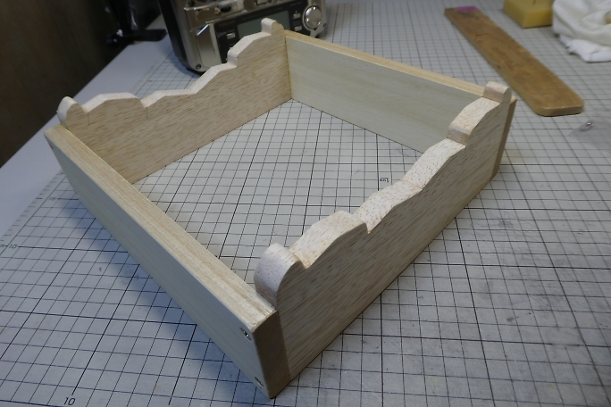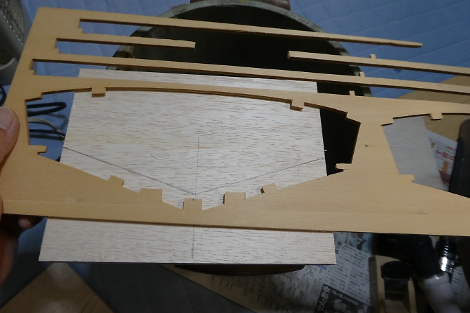 ![]() このキットには船台が付属しません。 胴枠から船底のカーブを拾って、船台を作ります。 ![]() 箱状に組み上げます。 ![]() 船底に接触する部分には糊付きのフエルトを貼りました。 |