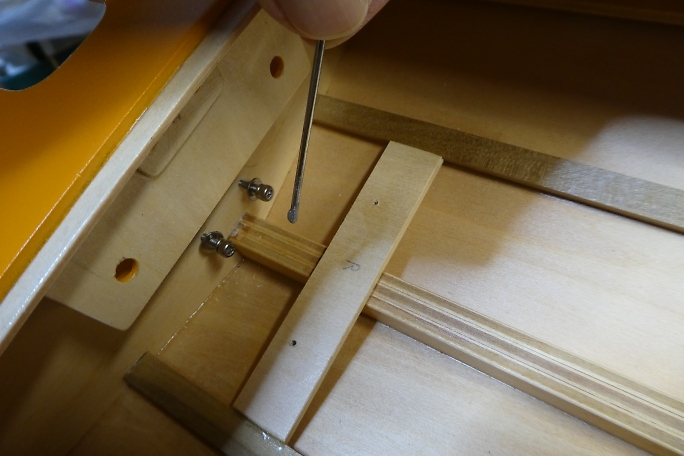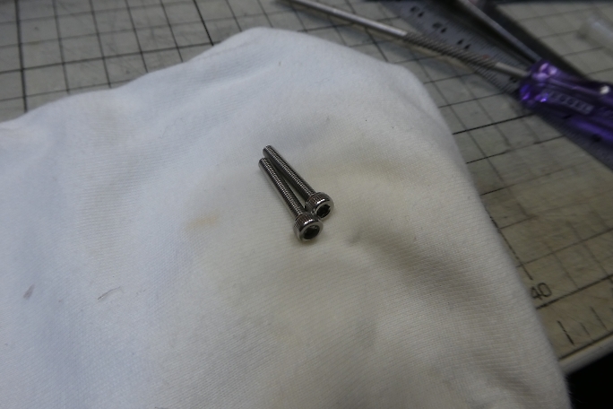 モーターマウントになるM3のSUSボルトです。 接着するためにアルコールで脱脂を行います。 ![]() 10ミリほど残してねじ込んだ所にに5分エポキシを塗って、最後までねじ込みます。 ![]() モーター取り付けネジが取り付けられたモーターマウントです。 |