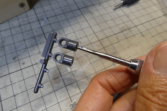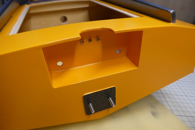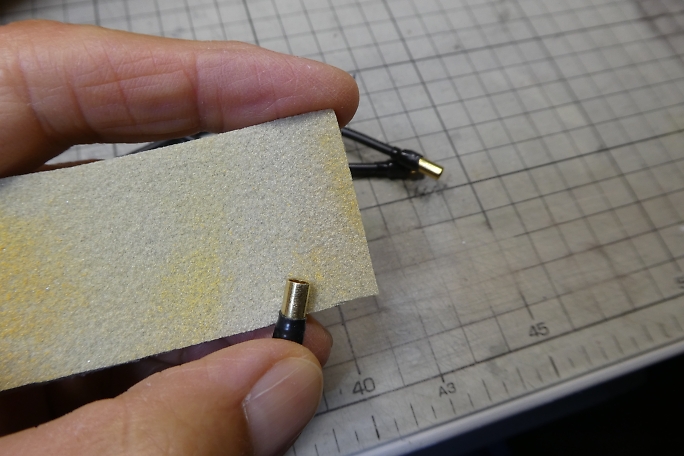 ![]() 船体に接着するゴールドコネクターのメス部分、外周をサンディングして足ツケをし、硬化促進剤で拭いておきます。 ![]() 船内から差し込んで、低粘度瞬間接着剤で接着しました。 ![]() 船外から見たコネクタです。 |