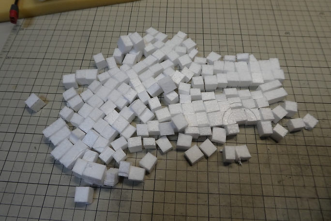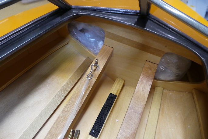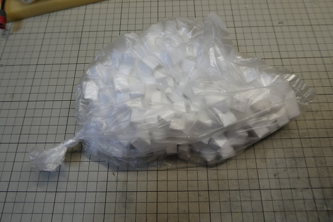 ![]() ![]() 沈没防止に発泡スチロールを角切りにして、ビニール袋に詰めました。 船首のスペースに押し込んでおきます。 |