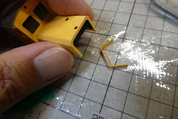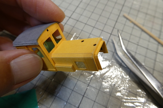 ![]() お面部分のパーツを接着します。 ![]() お面パーツとボンネットパーツに若干段差が出来たので、サンディングして修正をします。 力を入れすぎると毛羽立つ ので注意が必要です。 お面の内側に接着するパーツはも竹串の先端を使って曲げ加工をします。 ![]() お面に接着します。 ![]() 厚紙に凹凸加工をしたラジエターパーツです。 ここに、真鍮メッシュを追加してリアル感を出します。 ![]() 付属の接着剤で接着しました。 この接着剤は、乾燥するとゴム系のような感じになるので、真鍮メッシュも接着が 可能です。 |