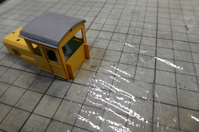 前面のお面になる部分をスクラップバルサの上でローラー掛けをして、カーブを作ります。 ![]() この程度の仕上がりです。 ![]() 整形したお面をシャーシに接着します。 ![]() これでペーパーの加工部分が終わりになりました。 ![]() シャーシと合体させてみます。 ![]() 台車と組み合わせます。 この状態で完成でもOKです。 ですが、きむらクラフトでは更に先に進みます。 |