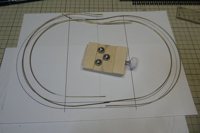 ![]() レールをレイアウトに合わせて、製作したベンダーを使用して曲げて行きます。 使用するレールは、20年ほど前に購入 して放置してあったフレキシブルレールです。 樹脂で200ミリ程度の長さに一体成形されている枕木からレール本体を抜き取って作業をします。 ![]() 図面に合わせて曲げます。 ![]() レールは左右と外側、内側の計4本に分割して曲げ加工を行いました。 ![]() 曲げ終わったレールを枕木に通して行きます。 枕木は2本ずつ前後枕木と繋がっていて、ある程度のカーブには対応 しますが、キツい曲がりになると対応仕切れないので、連結部分をニッパーで切り離して対応します。 ![]() ジョイナーでレール同士を接続して円形になりました。 ![]() 通電をして、実際に機関車を走らせてみます。 脱線、継ぎ目の引っかかりも無く、スムーズに走ってくれました。 |